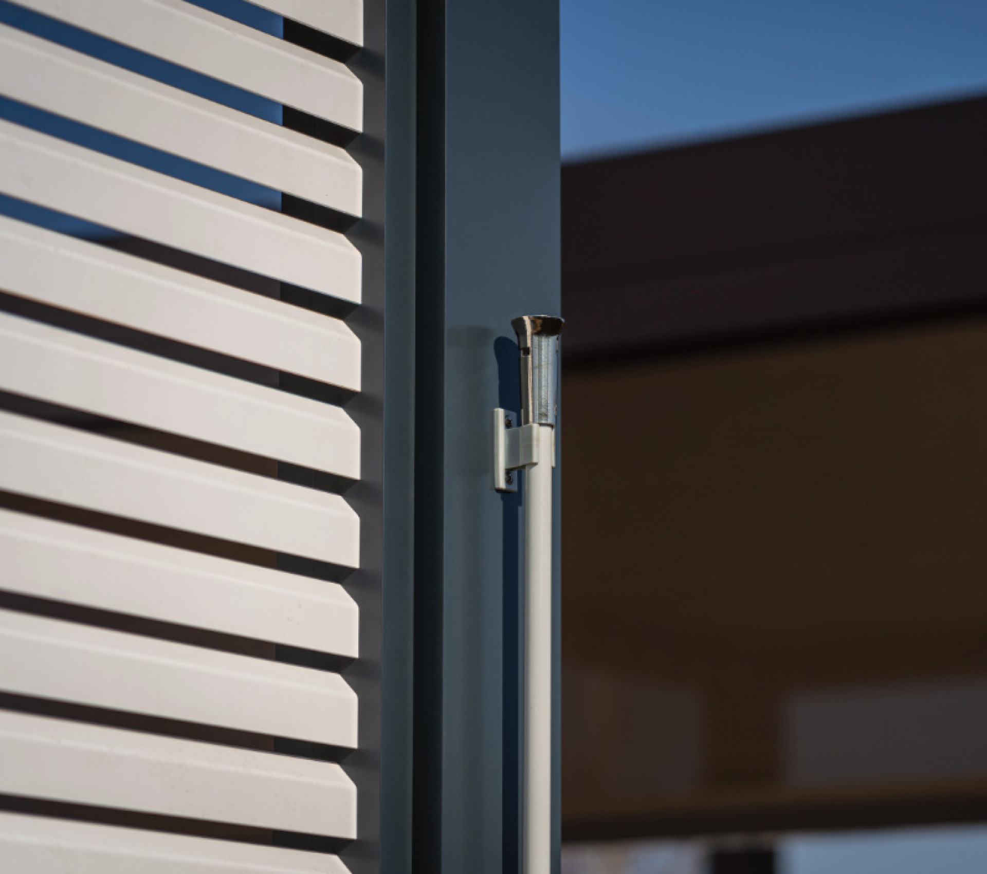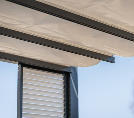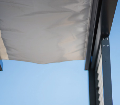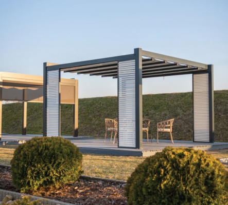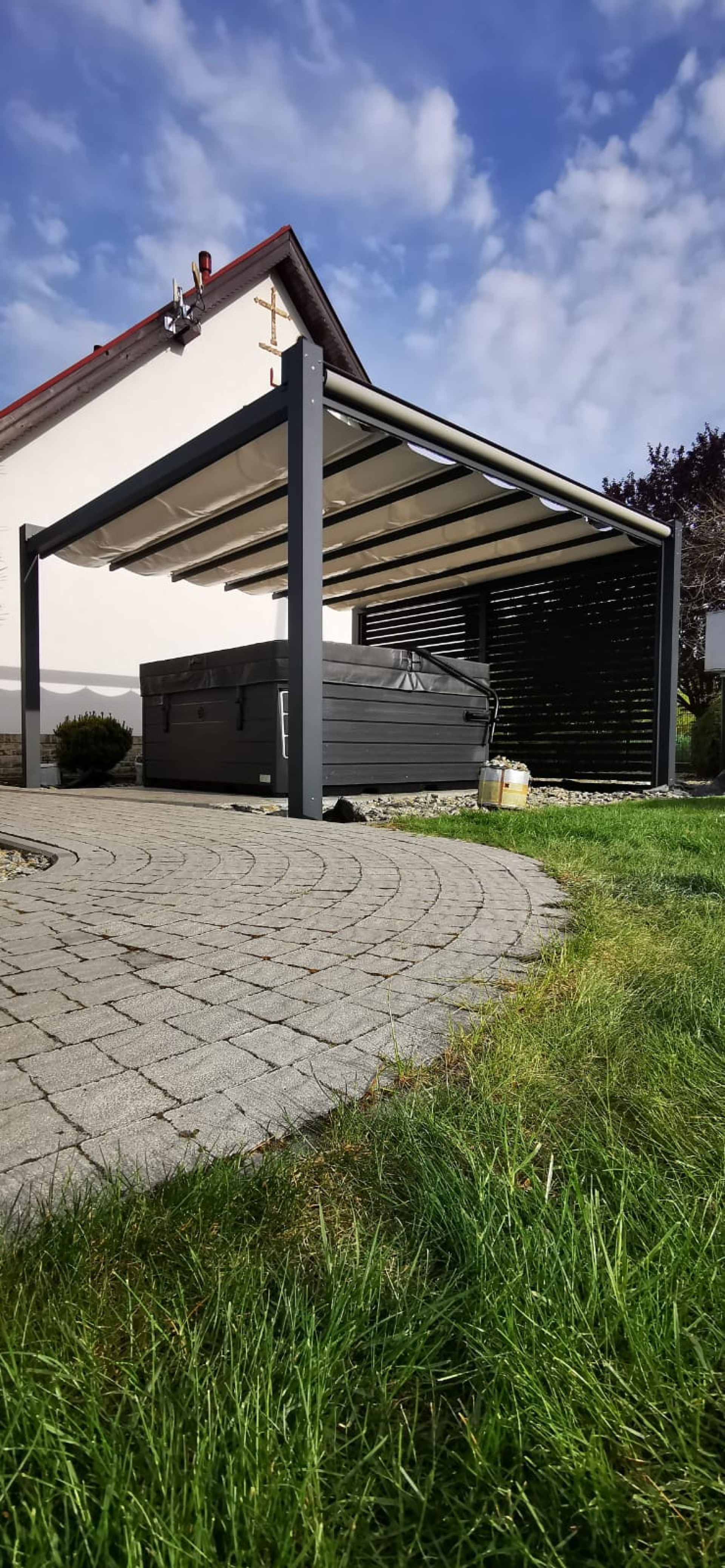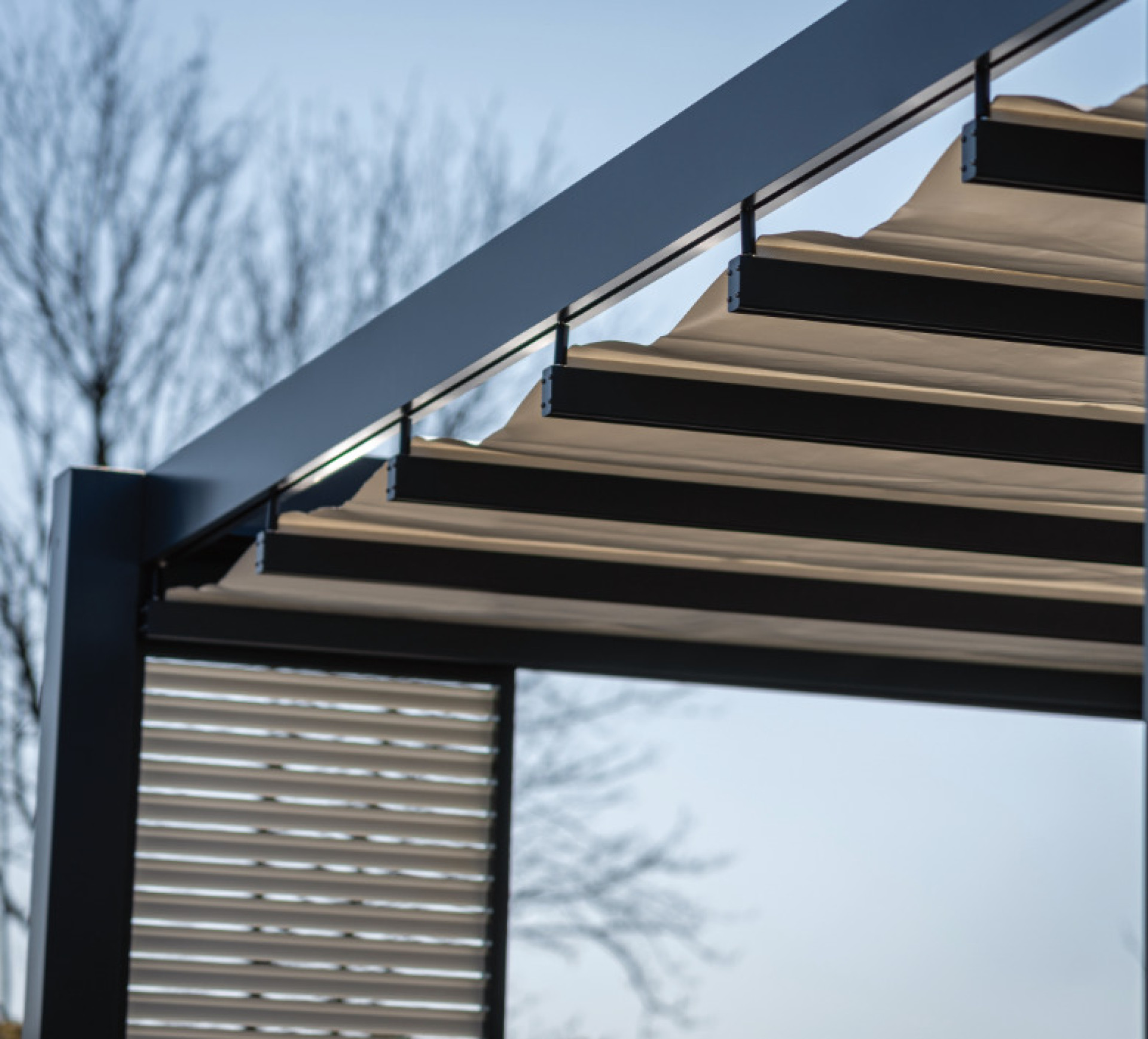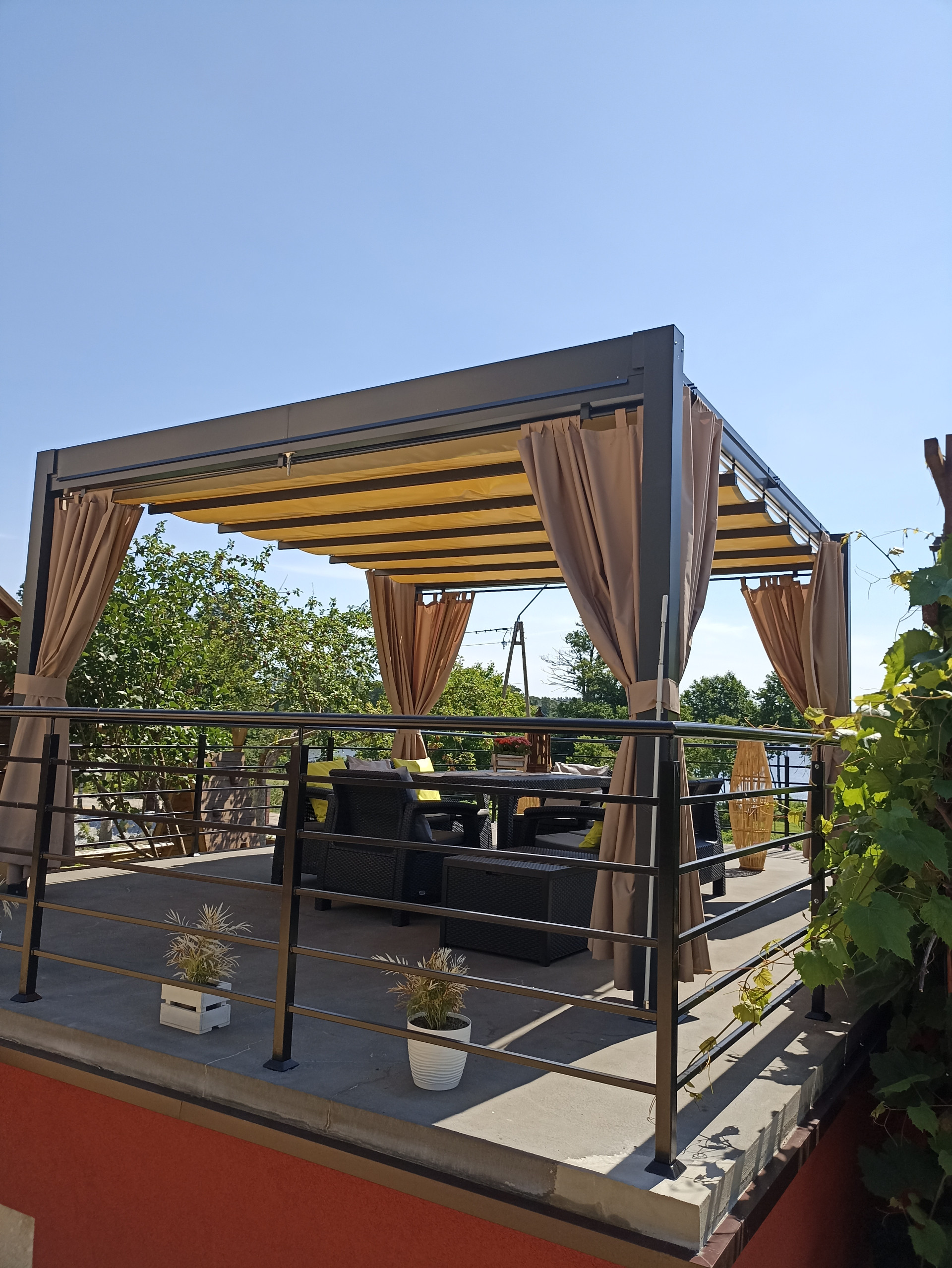 Nasza pergola EKTUS to połączenie sprawdzonej jakości i niepowtarzalnego wyglądu, który zachwyca na tarasie i w ogrodzie. Wykonana z materiałów najwyższej jakości, jej pokrycie ze specjalnej tkaniny zapewnia ochronę przed słońcem, wysokimi temperaturami i opadami atmosferycznymi. Stabilna i solidna konstrukcja gwarantuje nienaganny wygląd przez wiele lat. Pergola EKTUS została zaprojektowana tak, aby idealnie komponować się z różnymi stylami aranżacji, od klasycznych po nowoczesne. Jej elegancki i estetyczny wygląd ozdobi naszą posesję, tworząc niepowtarzalny klimat inspirowany roletami rzymskimi. Istnieje także opcja zamówienia elektrycznego sterowania dachu za dodatkową opłatą.