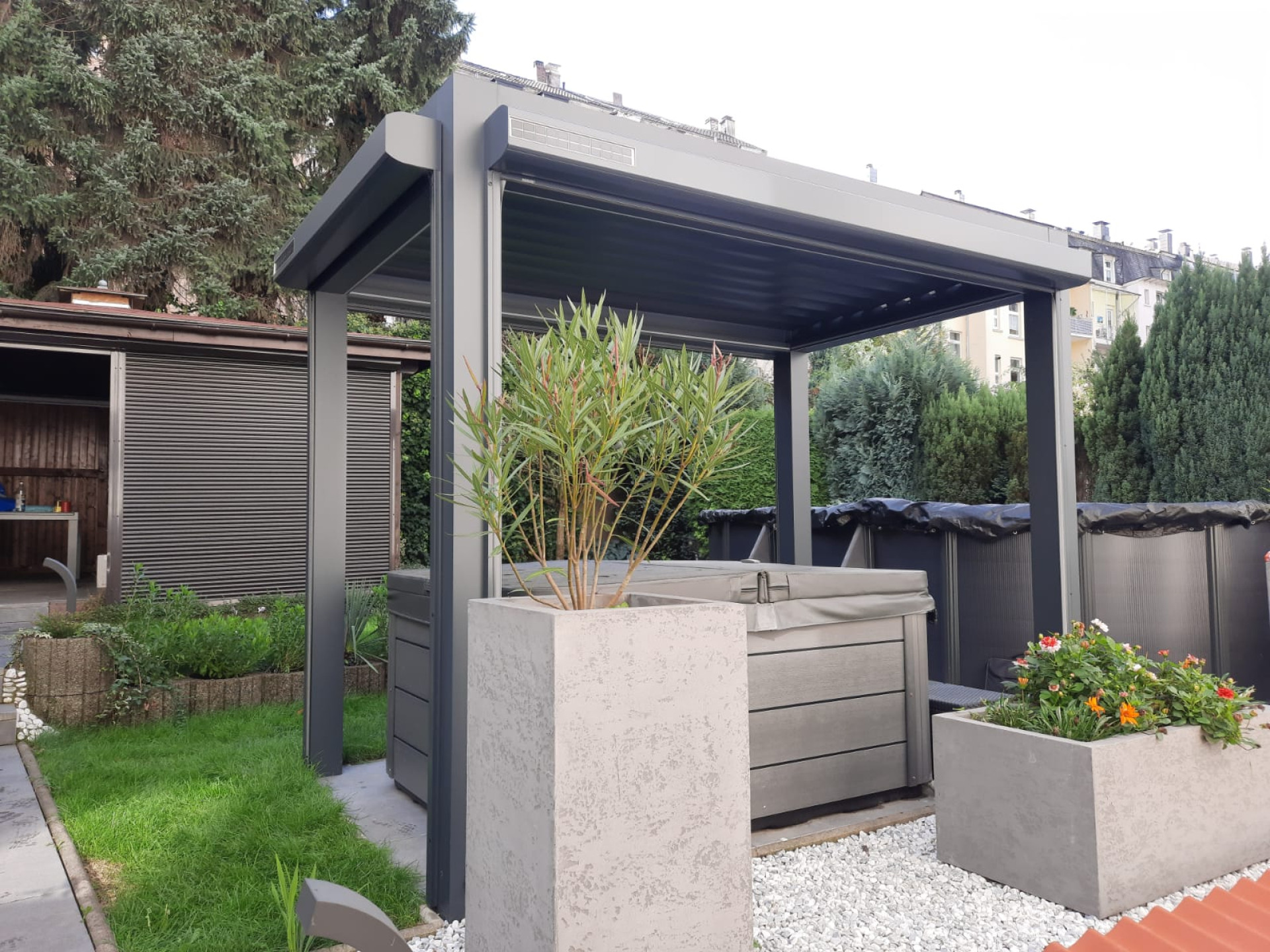 Pergola MALO - doskonałe rozwiązanie dla Twojej przestrzeni zewnętrznej. Wykonana z aluminium, gwarantuje trwałość i odporność na warunki atmosferyczne. Jej minimalistyczny design pasuje do różnych aranżacji ogrodowych. Możliwość sterowania lamelami od 0 do 120 stopni zapewnia optymalne zacienienie i wentylację. Idealna jako zadaszenie dla tarasu i ogrodu.