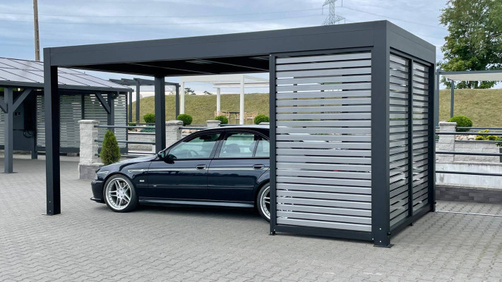 Ochrona pojazdów na podjeździe staje się łatwiejsza dzięki wiatom samochodowym. Wiaty te, jak nasza OMEGA MODERN, to solidne konstrukcje z profili aluminiowych i nierdzewnych/stalowych, gwarantujące ochronę przed warunkami atmosferycznymi. Możliwość malowania na dowolny kolor z palety RAL sprawia, że dopasowanie ich do otoczenia jest proste. Dodatkowo, nowoczesny carport może być wyposażony w funkcjonalne pomieszczenie gospodarcze, zapewniające bezpieczne przechowywanie narzędzi, sprzętów i mebli ogrodowych. Solidne aluminiowe słupy malowane proszkowo zapewniają stabilność i odporność na korozję, a ekstrudowany profil boczny dachu umożliwia różne warianty podświetlenia, w tym LED barwa ciepła 3000K oraz LED RGB z możliwością wyboru koloru. Nasza wiata samochodowa charakteryzuje się takimi elementami jak: elegancko ukrtye przewody elektryczne w profilu, indywidualna aranżacja bocznej zabudowy, subtelne ukryte łączenia ze stali nierdzewnej, solidne ocynkowane stopy, możliwość wyposażenia carportu w falownik oraz zintegrowana rynna odprowadzająca wodę.