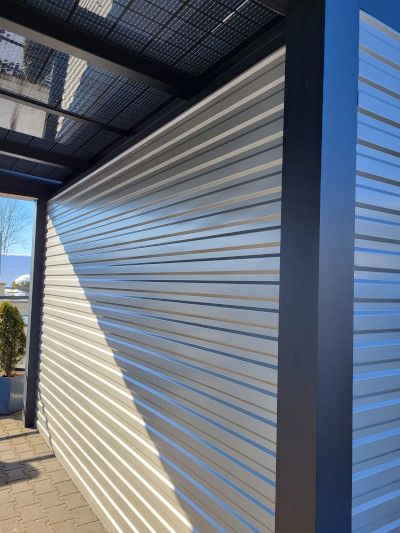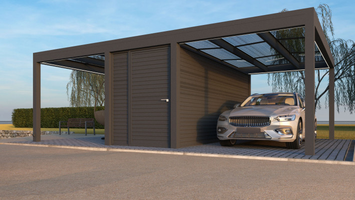 Wiata samochodowa OMEGA MODERN PV to odpowiedź na zapotrzebowanie naszych Klientów, którzy wymagają czegoś więcej niż tylko carport. Jej wyjątkowość polega na stabilności, ergonomii i przestrzeni, ale przede wszystkim posiada ona panele fotowoltaiczne, które wytwarzając prąd pozwolą na naładowanie samochodu czy podłączenie urządzeń ogrodniczych. Panel stanowi bezpośrednie pokrycie dachu, a układ paneli - "wschód-zachód", zapewniając optymalne wykorzystanie energii słonecznej. Dodatkowo, panele te mają 25 lat gwarancji i są jednymi z najbardziej wydajnych na rynku, charakteryzując się bezramową konstrukcją "glass-glass" bi-facial. Wiata OMEGA MODERN PV wykonana jest z profili aluminiowych oraz elementów nierdzewnych/stalowych ocynkowanych elektrolitycznie, ogniowo oraz malowanych proszkowo w 10 standardowych kolorach. To wyjątkowo stabilna i oporna na warunki atmosferyczne konstrukcja, która ochroni pojazdy, stworzy przestrzeń zarówno do relaksu, jak i do przechowywania, a do tego będzie wytwarzać własną energię ze słońca! Dodatkowo, wiata posiada obliczenia statyczne, a dodatkowe pomieszczenie gospodarcze może stanowić idealne miejsce na bank energii.